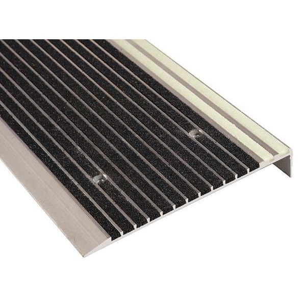 Stair Tread Cover, Lip Height 1 3/8 in, Nose Style Square, Installation Hardware Included Yes, Surface Design Ribbed, Color Glow-in-the-Dark, Edge Style Square, Includes Stainless Steel Screws, Installation Method Fasteners, Material Aluminum, Overall Depth 9 in, Overall Width 36 in, Product Type Anti-Slip Stair Tread, Standards UL 1994, Thickness 1/4 in