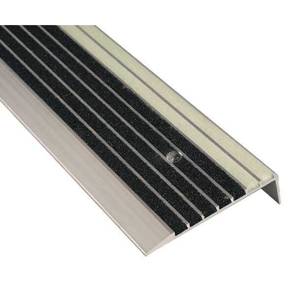Stair Tread Cover, Lip Height 1 3/8 in, Nose Style Square, Installation Hardware Included Yes, Surface Design Multi-Strip Grit, Color Black/Glow-in-the-Dark, Edge Style Square, Includes Stainless Steel Screws, Installation Method Fasteners, Material Aluminum, Overall Depth 5 in, Overall Width 48 in, Product Type Anti-Slip Stair Nosing, Standards UL 1994, Thickness 1/4 in, Two-Stage Installation No