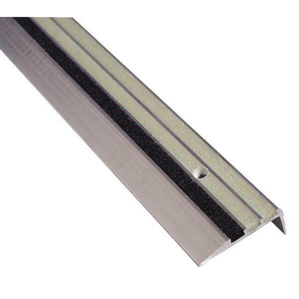 Stair Tread Cover, Lip Height 1 3/8 in, Nose Style Square, Installation Hardware Included Yes, Surface Design Multi-Strip Grit, Color Black/Glow-in-the-Dark, Edge Style Square, Includes Stainless Steel Screws, Installation Method Fasteners, Material Aluminum, Overall Depth 3 in, Overall Width 72 in, Product Type Anti-Slip Stair Nosing, Standards UL 1994, Thickness 1/4 in, Two-Stage Installation No