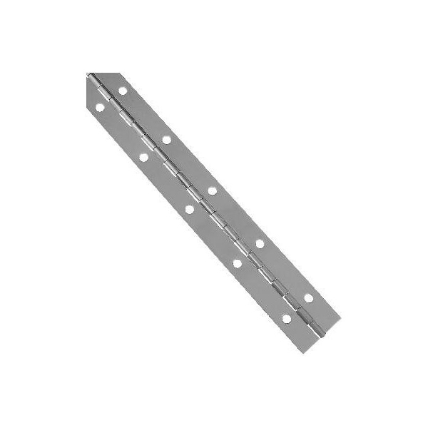 112 x 48, Stainless Steel Continuous Hinge, Great For Marine Applications, Designed For Cabinets, Chest, Folding Tables, Tool Sheds, Etc, Stainless Steel Screws Is Included, Bright Annealed Finish Can Be Cut To Desired Length, Stainless Steel Friction Type Pin Will Not Fall Out, Surface Mount Allows For Easy Installation, Screw Holes Are Spaced At 2 Intervals, 1 Per Pack, Carded