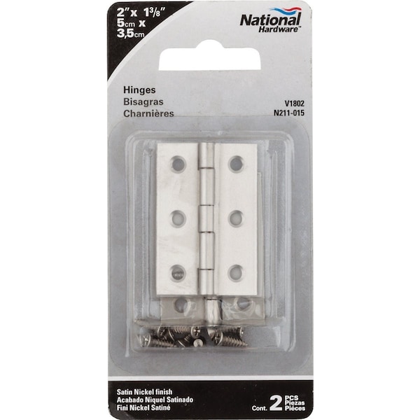 2'' x 1-3/8'' Satin Nickel Broad Hinge, 2PK