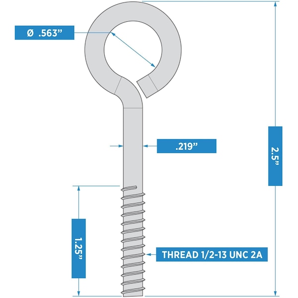 2160BC 1/4in X 2-1/2in Eye Bolt - Zinc