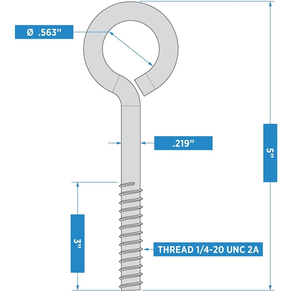 2160BC 1/4in X 5in Eye Bolt - Zinc -National Hardware's 1/4in x 5in Eye Bolt, with hex nut, is designed to firmly attach a securing eye to a structure for rope or cable ties -Manufactured from steel wire for durability -Standard machine screw threads allows for easily installation in a wide variety of applications -For interior and exterior applications where hanging is desired -Coated with WeatherGuard Protection to withstand harsh weather conditions and prevent corrosion -Safe Working Load is 90 lbs -National Hardware's Lifespan