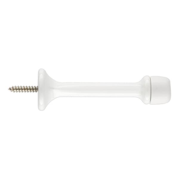 National Hardware 236 Rigid Door Stop, Projection Size: 3-1/16 in, Arm Type: Round, 3-23/32 in L, 31/32 in W, Zinc, White, Surface Mounting, Tip Material: PVC, Includes: Mounting Hardware