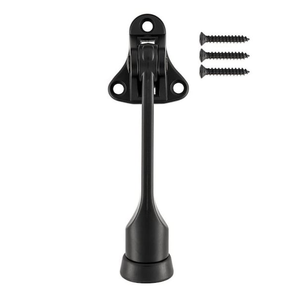 National Hardware 238 Door Stop, Projection Size: 2-7/32 in, Opening Action: Kick Down, 4-15/16 in L, 1-5/8 in W, Zinc, Black, Matte, Screw Mounting, Tip Material: PVC, Includes: Mounting Hardware
