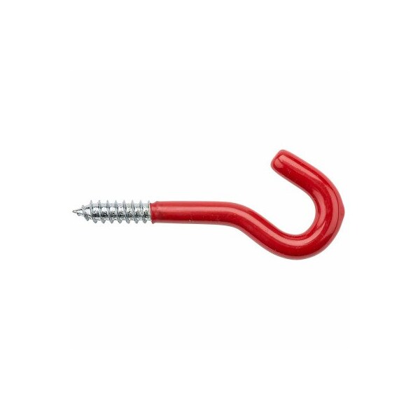 V2211, 2 Pack, 516 x 412, Red Vinyl Coated Screw Hook, Designed To Hold Lawn Garden Equipment, Sports Equipment, Planters, Lanterns, Clothesline, Etc, Vinyl Coating Helps Prevent Scratching, Carded