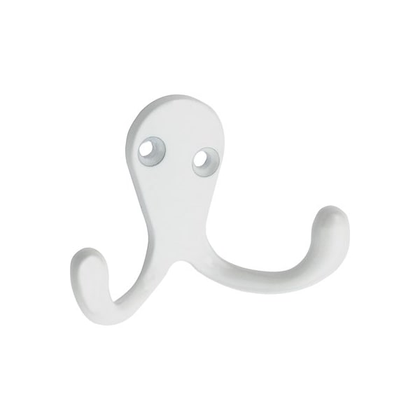 2 Pack, White, Double, Clothes Hook, Screws Included, Carded