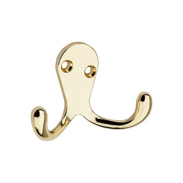 2 Pack, Bright Brass, Double Coat Hat Hook, Screws Included, Carded