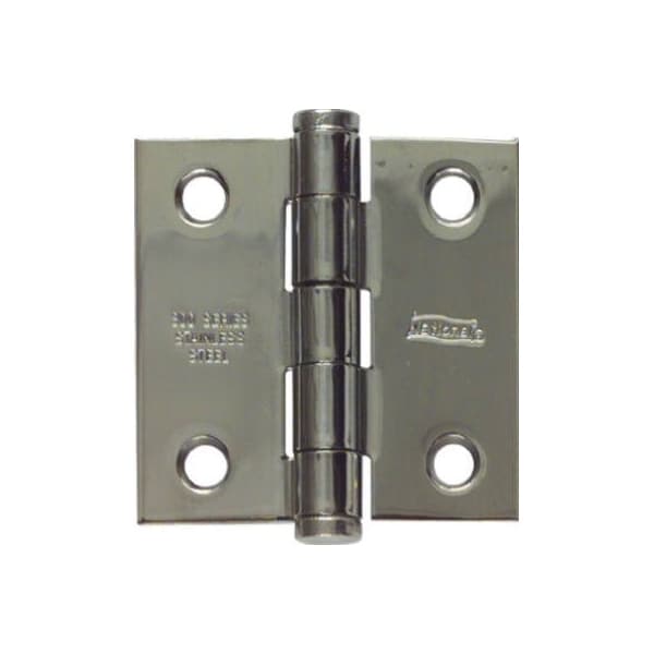 2 x 2, Stainless Steel Square Corner Door Hinge, Full Mortise, Designed For Industrial, Commercial Residential Doors, Especially In Marine Other Outdoor Applications, Stainless Steel For Maximum Corrosion Protection, Nonrising Pin, Removable Pin For Easier Installation, Heavy Gauge Material For Added Strength, NIB On Bottom Of Hinge For Finished Appearance, 2 Per Pack, Carded