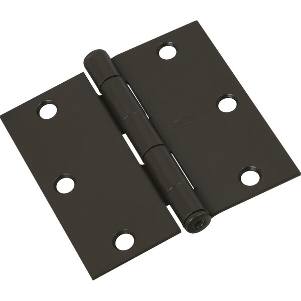 National catalog model No. SPB512 3 In. square corner door hinge. Heavy-gauge cold-rolled steel for added strength. Flush pin for finished appearance. 5 knuckle full mortise design. Square corners. Screw holes are countersunk. Removable pin for easier installation or removal of doors.