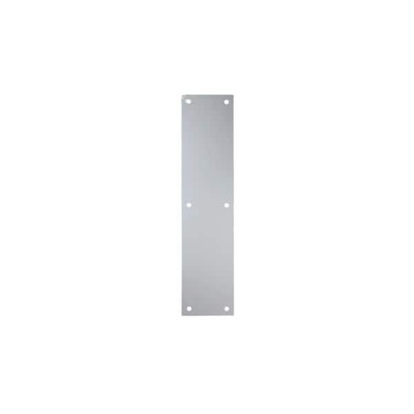 Satin Aluminum push plate 312 x 15 Designed to protect the surface and cover holes on swinging doors, especially in high traffic areas Anodized surface for extra durability Plastic cover to protect finish during installation Mounting screws included Manufactured of aluminum