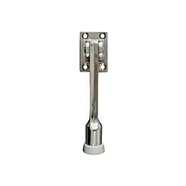 5, Chrome, Kick Down Door Stop, Designed As A Door Stop That Kicks Down To Hold The Door Open, The Stop Locks In The Up Position To Allow The Door To Open Freely, The Ribbed Rubber Foot Is For Positive Holding, Spring Design Holds The Stop In The Up Position, Carded