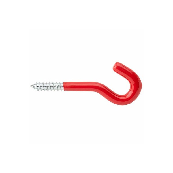 2211BC, 516 x 412 Red Screw Storage Hook, Designed To Hold Lawn Patio Equipment, Sports Equipment, Planters, Lanterns, Clotheslines, Etc, MarProof Red Vinyl Coated Zinc Plated Steel