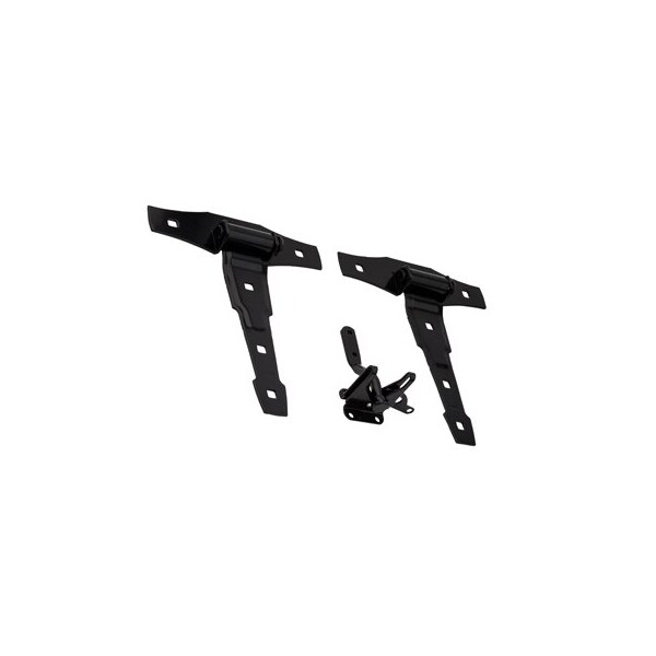V1299, Black, Deco Gate Set Kit, Includes 2 THinges, 1 Latch With Strike, Mounting Fasteners, Designed For Right Or Left Hand Applications, Latch Can Be Padlocked For Added Security, Carded
