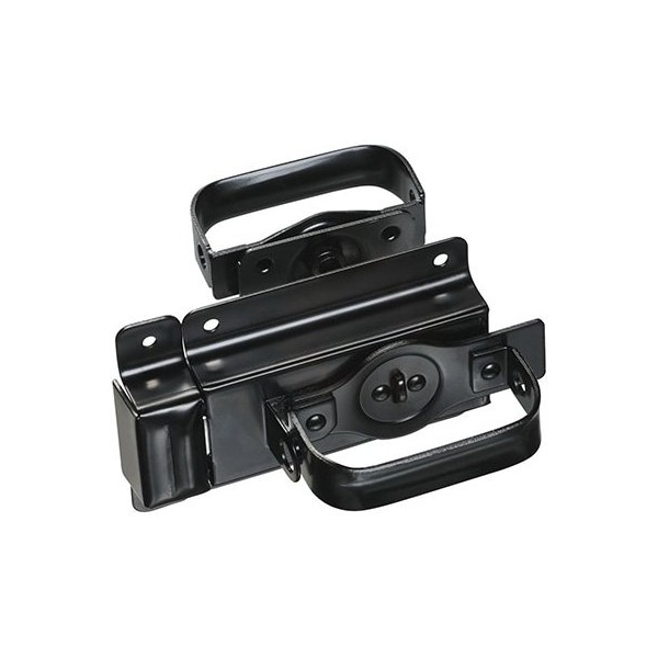 V25, Black, Swinging Heavy Duty Door Latch, Designed For Swinging Doors On Storage Sheds Barns, OutBuildings, Etc, Designed For Right Or Left Handed Applications, Latches Automatically, Can Be Padlocked For Added Security, Handle Is Designed To Prevent Flattening If Door Slams Against Building, Can Be Operated From Either Inside Or Outside Of Door, Wide Strike Allows For Door Sag, Bolt Has Rounded Face For Easy Latching, Bracket Is Provided To Hold Door Open, Visual Pac