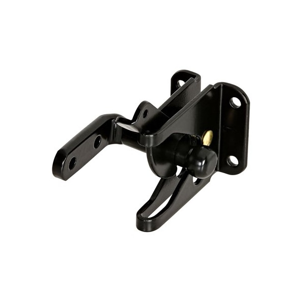 V22, Black, Gate Latch, Designed For Out Swing Gates, Doors Animal Pens, Strike Can Be Mounted Either On The Gate Or The Post, Latches Automatically, Designed For Right Or Left Hand Applications, Can Be Padlocked For Added Security, Hole Punch In Release Lever Is For Rigging Cord Release From Opposite Side, Carded