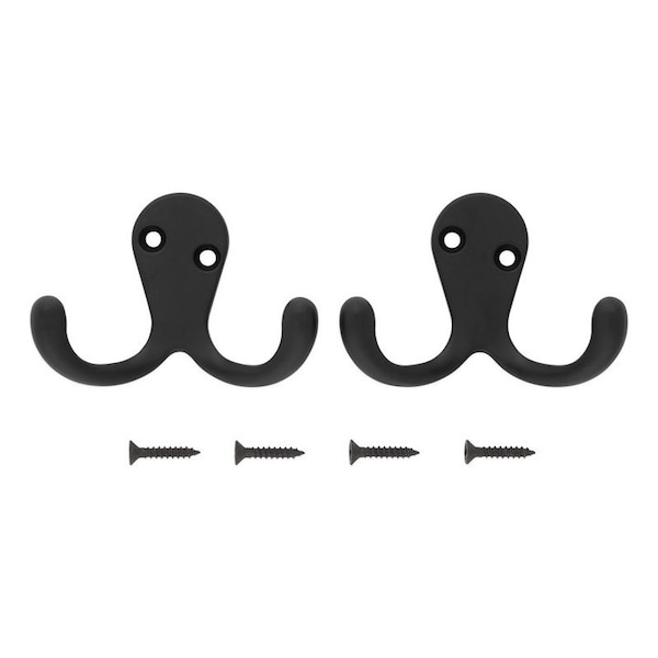 National Hardware Cloth Hook, 35 lb Weight, Number of Hooks: 2, Matte, Black, Surface Mounting, Mounting Hole Diameter: 0.14 in, Projection Size: 1.76 in, Dimensions: 1.73 in H x 2.88 in W, Includes: Mounting Hardware