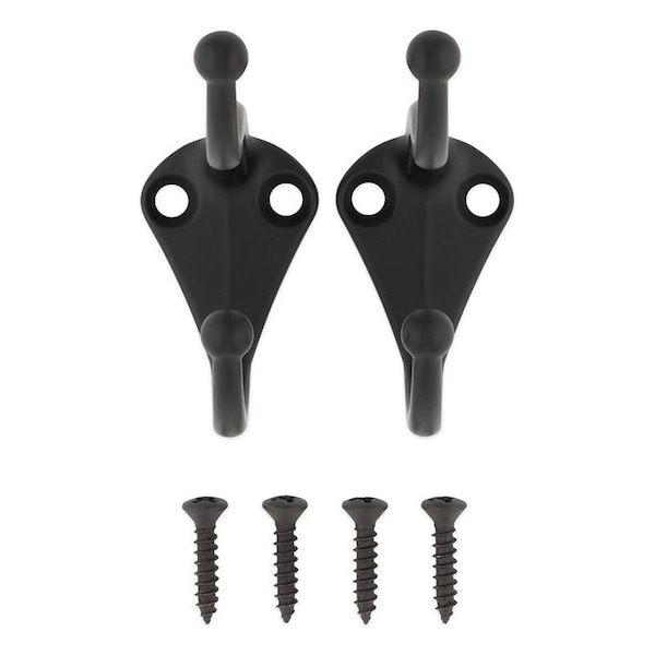 National Hardware Coat Hook, 35 lb Weight, Matte, Black, Surface Mounting, Mounting Hole Diameter: 0.18 in, Projection Size: 2-3/4 in, Dimensions: 2.35 in H x 1.07 in W, Includes: Mounting Hardware