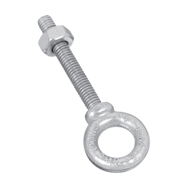 Designed for environments where high strength is required, the national hardware 3/8 inch x 2-1/2 inch galvanized steel eye bolt with hex nut features galvanized steel construction for strength and corrosion resistance. The eye bolt provides a shoulder for easy tightening and can be used in marine and agricultural applications.