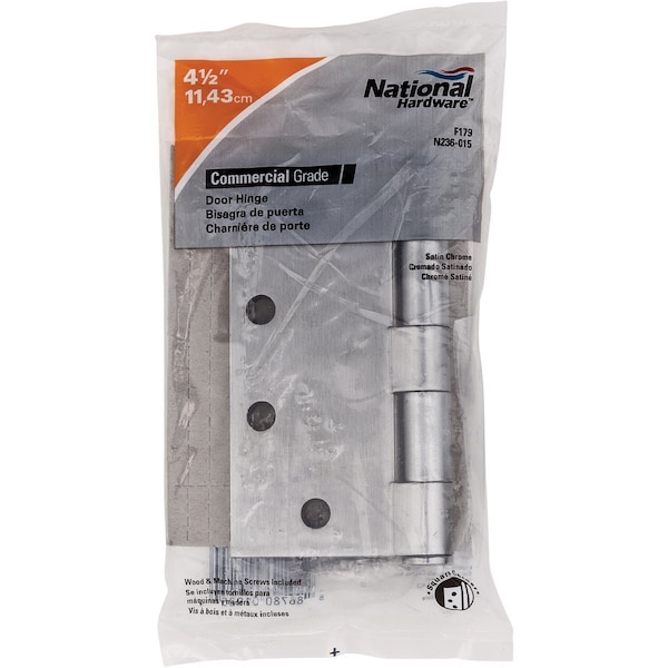 Commercial grade with thicker gauge and more durable design than standard hinges. Template screw hole location for use on either wood or hollow metal doors and frames. Equipped with easily seated non-rising removable pins. Five knuckle full mortise design. Conforms to ANSI/BHMA Grade 3. Includes wood & machine screws. For use on internal or external doors of medium weight and average frequency.