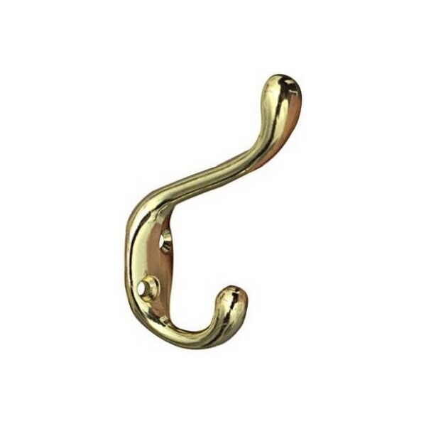 Heavy Duty Bright Brass Coat Hat Hook, Screws Included