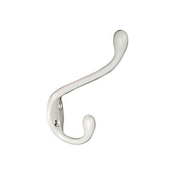 White, Heavy Duty Garment Hook, Designed To Mount On A Door Or Wall TO Hold Long Heavy Garments, Hooks Feature A Upscale Design, Safe Working Load 35 LB, Carded
