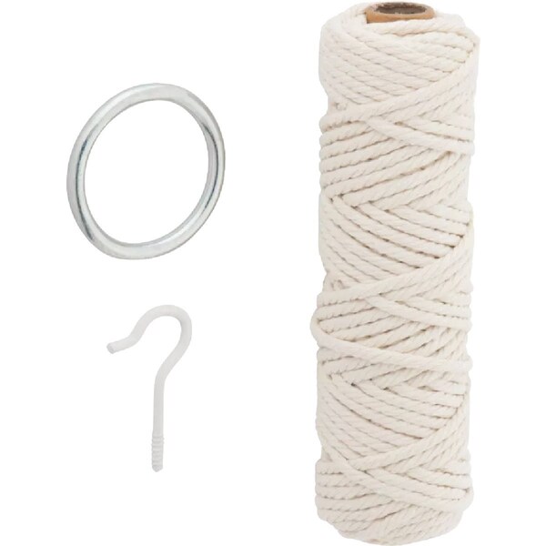 Plant hanger kit. Includes: (1) 2 In. ring (1) 2-1/2 In. white ceiling hook (1) 115 Ft. macrame cord (4MM thick). Helps you create a unique indoor environment that embraces your personal style.