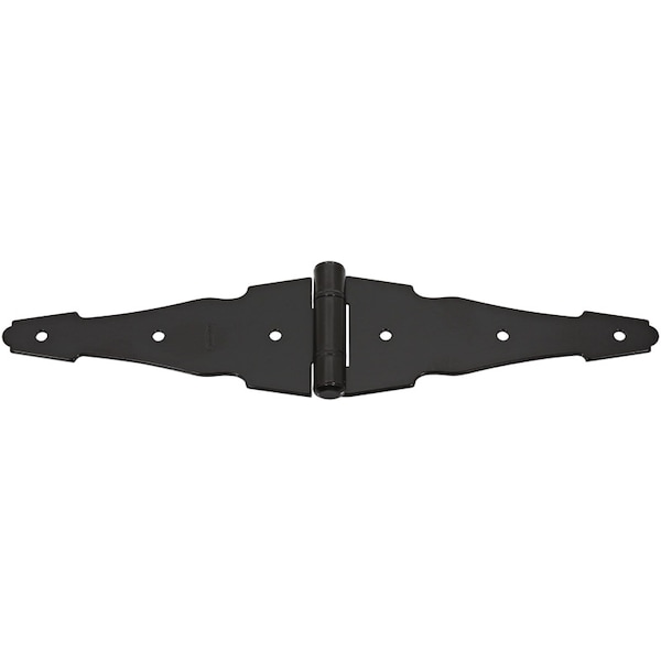 National Hardware Ornamental Strap Hinge is ideal for gates, garage doors, barns and sheds. Patented bearing design eliminates metal to metal contact for smooth, quiet operation. Tight pin allows for right or left hand applications. Durable black finish complements a variety of applications.