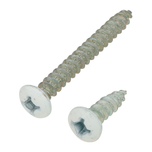 White bracket screw, for attaching 211 shelf bracket to walls and shelves.