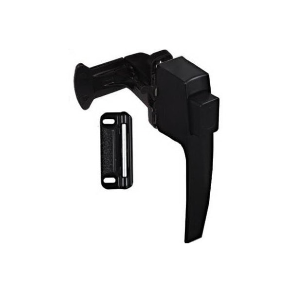 Satin Black Push Button Latch, For Wood Or Metal Screen Storm Doors With 134 Hole Spacing For Doors From 114 To 2 Thick, Use Pan Mach Screws 832 x 238, Not Provided, 1 Piece Shaft Provides Firm Push Button Action, Offers Anti Lockout Design, Inside Latch Has Exclusive Double Lock Deadbolt Security