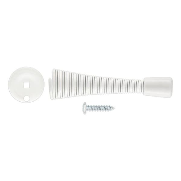 National Hardware V232 Door Stop, Opening Action: Spring, 3-1/8 in L, 15/16 in W, Steel, White, Screw Mounting, Tip Material: PVC, Includes: Mounting Hardware