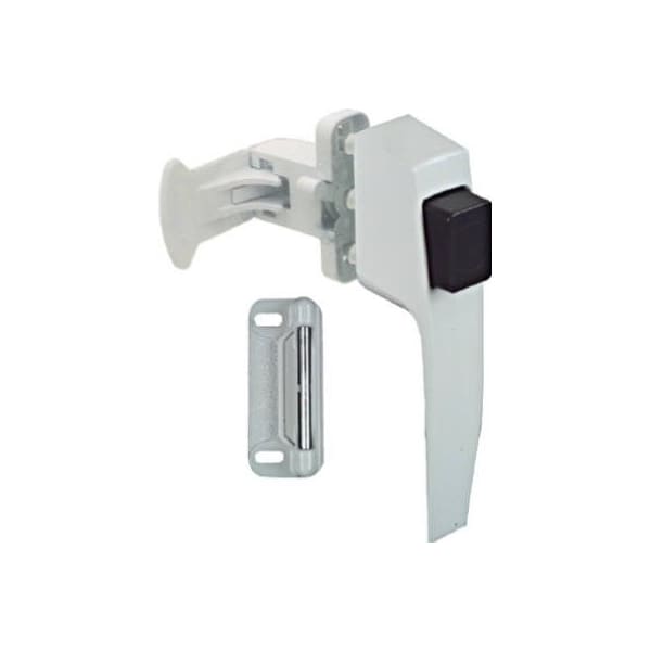 White Pushbutton Latch, This Pushbutton Latch Is Designed For Wood Or Metal Screen Storm Doors With 1 Hole Spacing, Will Fit Doors Up To 2 Thick, 1 Piece Shaft Provides Firm Pushbutton Action, Carded