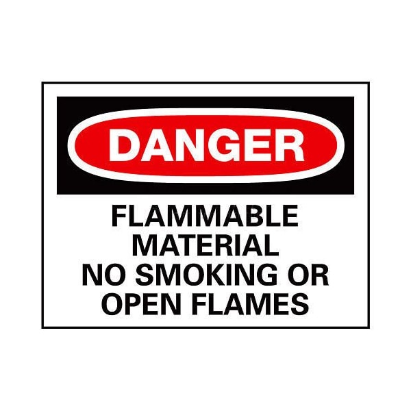 Brightly colored, easy to read signs helps comply with OSHA standards. Danger signs should be used where immediate hazards existText on Sign :DANGER - FLAMMABLE MATERIALNO SMOKING OR OPEN FLAMES
