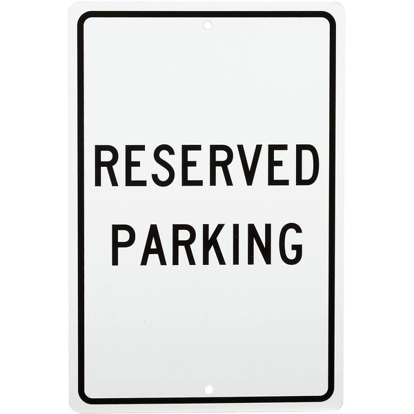 Top quality impact and corrosion resistant .063 aluminum sign has a glossy baked enamel finish. Pre-drilled for easy mounting. Text on Sign: RESERVED PARKING