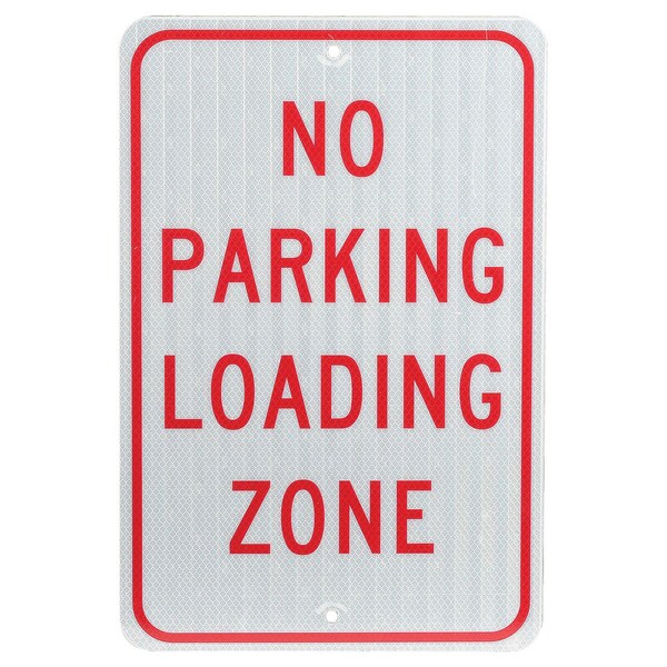 .08mm aluminum parking lot sign-NO PARKING LOADING ZONE, top quality impact and corrosion resistant sign has a glossy baked enamel finish. Pre-drilled for easy mounting, text on Sign: NO PARKING LOADING ZONE