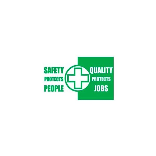 Workplace safety banners safety protects people quality protects job 3'h x 5'l workplace safety signs convey your company's commitment to safety and quality throughout the facility. Safety banner is made with heavy duty 10 oz. Polyethylene that is tear resistant. Polyethylene banner features hemmed edges for added strength. Motivational banner has grommets that allow easy hanging applications.