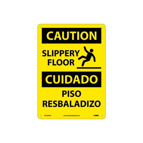 Bilingual Aluminum Sign - Caution Slippery Floor