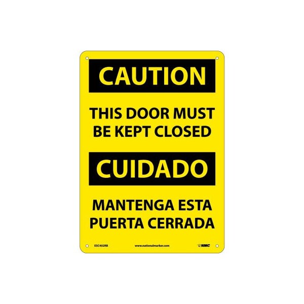 Bilingual caution signs multilingual rigid plastic 10 x 14 caution - this door must be kept closed easily understood caution sign that conveys important messages in english and spanish. Warns against potential hazards and unsafe conditions.