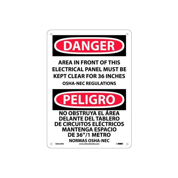 Bilingual danger signs rigid plastic 14 x 10 danger area in front of this electrical panel must be kept clear for 36 inches. easily understood danger sign that conveys important messages in spanish and english. Uses universally understood graphics to reinforce message. Warns against immediate hazard or unsafe situations.