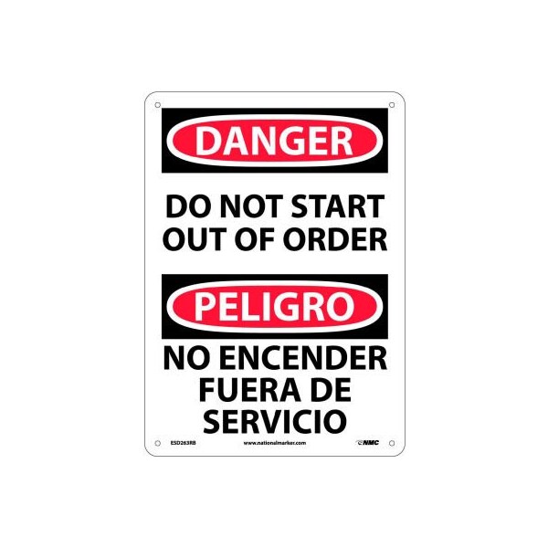 Bilingual danger signs rigid plastic 14 x 10 danger do not start - out of order easily understood danger sign that conveys important messages in spanish and english. Uses universally understood graphics to reinforce message. Warns against immediate hazard or unsafe situations.