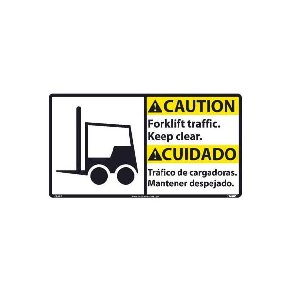 Bilingual caution signs multilingual pressure sensitive vinyl 18 x 10 caution: forklift traffic. Keep clear. easily understood caution sign that conveys important messages in english and spanish. Warns against potential hazards and unsafe conditions.