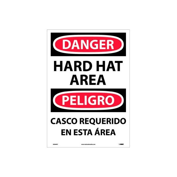 Bilingual danger signs pressure sensitive vinyl 20 x 14 danger hard hat area easily understood danger sign that conveys important messages in spanish and english. Uses universally understood graphics to reinforce message. Warns against immediate hazard or unsafe situations.