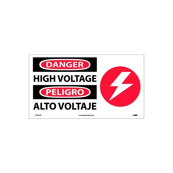 Bilingual safety signs pressure sensitive vinyl 10 x 18 danger - high voltage easily understood safety sign that conveys important messages in spanish and english. Uses universally understood graphics to reinforce message. Provides important safety information to both english and spanish speaking employees.