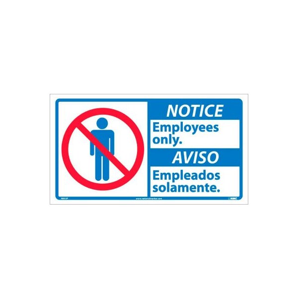 Bilingual notice signs pressure sensitive vinyl 10 x 18 notice: employees only. easily understood danger sign that conveys important messages in spanish and english. Uses universally understood graphics to reinforce message. Provides important safety information to both english and spanish speaking employees.