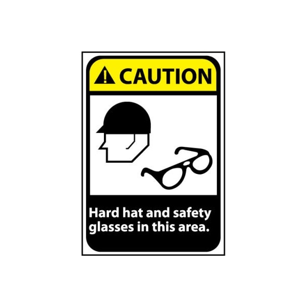 Ansi caution signs hard hat and safety glasses required 14 x 10 pressure sensitive vinyl caution signs notify personnel and others of requirements in area and to be cautious of surroundings. Caution safety signs feature universally understood graphics for easy identification and comprehension at first glance. Ansi signs have a safety alert triangle to indicate presence of an immediate or potentially hazardous situation. Safety signs meet the new ansi z535 guidelines for standardization.