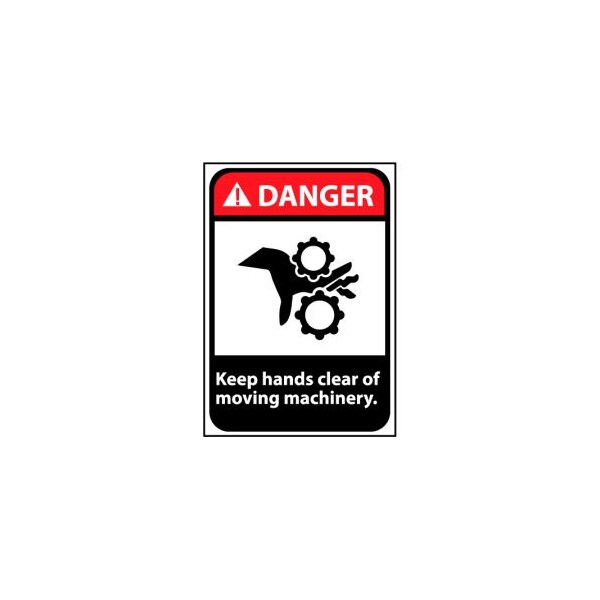 Danger Sign 14x10 Rigid Plastic - Keep Hands Clear Of Moving Machinery