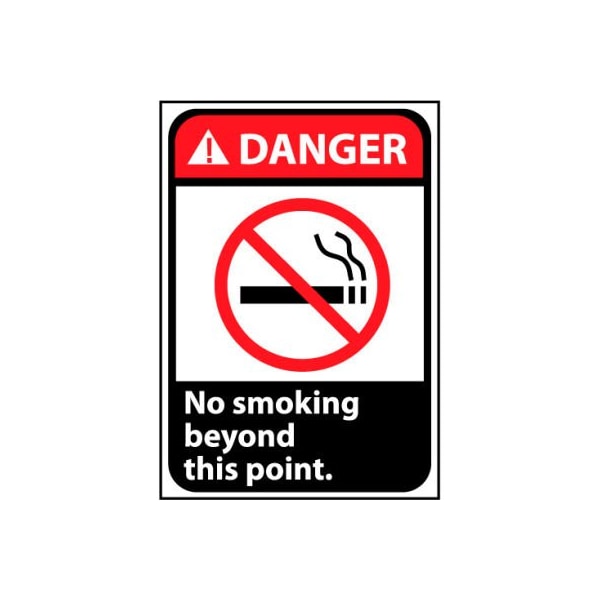 No smoking beyond this point 14 x 10 rigid plastic danger signs help notify personnel and others of potential hazards. Danger safety signs feature universally understood graphics for easy identification and comprehension at first glance. Ansi signs have a safety alert triangle to indicate presence of an immediate or potentially hazardous situation. Safety signs meet the new ansi z535 guidelines for standardization.