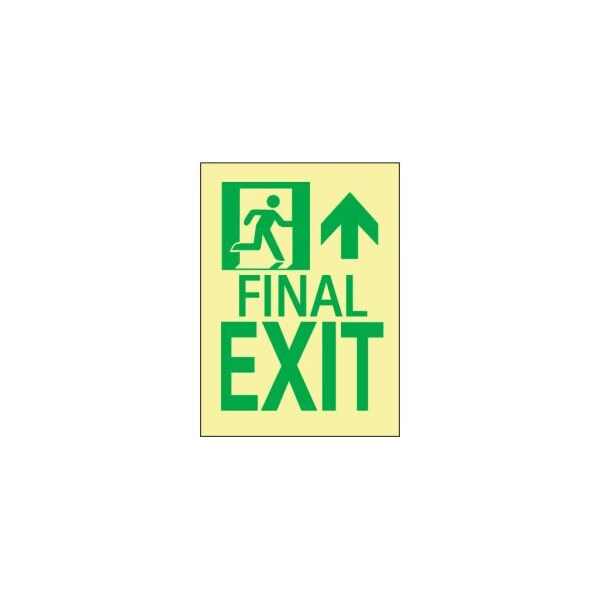 Glo-brite exit signs final exit signs -- foward/right - flexible polyester these photo luminescent signs absorb and store energy from ambient fluorescent light. Glo brite signs are easily visible in the event of a sudden blackout. Signs are listed to ul 924 through ul. Signs are maintenance free; no mechanical or electrical power source required and will last 25+ years. Meets nfpa life safety code 101, and osha requirements. Meets current building codes including ibc, icbo, boca, sbcci and nfpa.