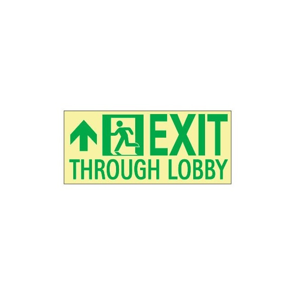 Glo-brite exit signs exit through lobby signs -- foward/left - flexible polyester these photo luminescent signs absorb and store energy from ambient fluorescent light. Glo brite signs are easily visible in the event of a sudden blackout. Signs are listed to ul 924 through ul. Signs are maintenance free; no mechanical or electrical power source required and will last 25+ years. Meets nfpa life safety code 101, and osha requirements. Meets current building codes including ibc, icbo, boca, sbcci and nfpa.
