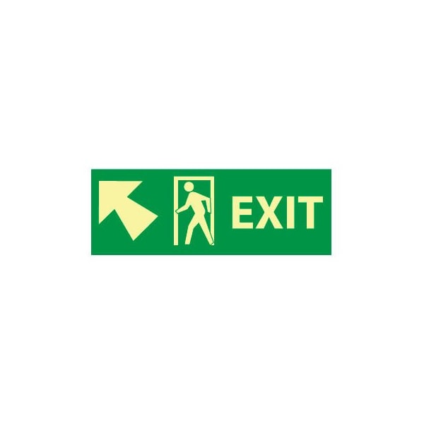 Glow fire safety signs fire safety signs exit/left up arrow - rigid plastic glow fire safety signs feature large text and easily understood graphics to increase first glance comprehension. Signs comply with osha & nfpa requirements. Signs do not require mechanical or electrical power source. Provides an illumination duration time of 6+ hours. Meets osha and astm requirements.